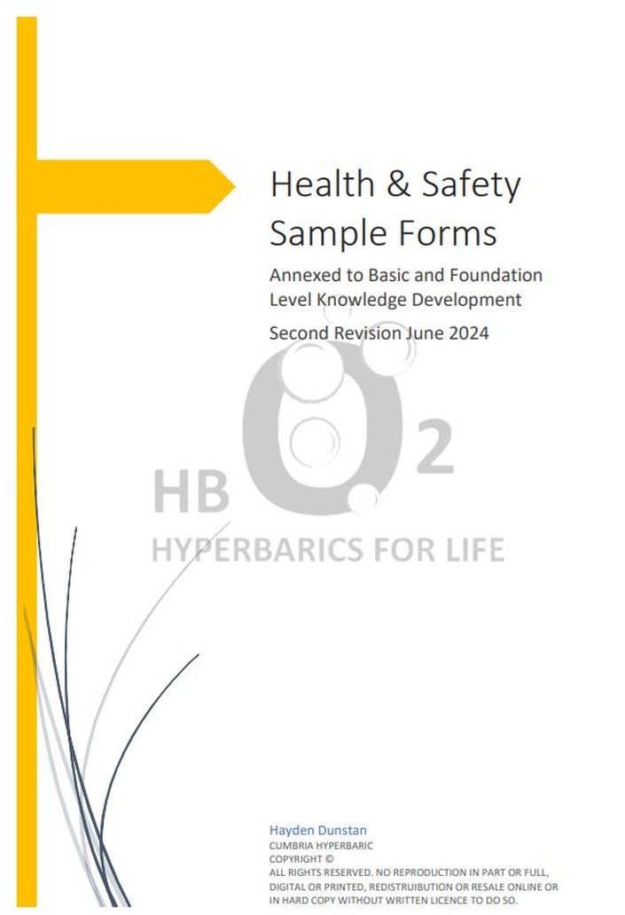 This supervisor module is intended to act as a combination of knowledge development as well as reference manual. It contains samples of health and safety forms, standard operating procedures, check lists and more. These components don't necessarily constitute lessons per se but rather serve as a point from which to build your own policies in terms of health and safety, daily procedures and so on. This bonus material was formerly titled "Health and Safety Forms" and was published under its own cover. It has now been incorporated in the supervisor module thus removing the need to acquire it separately for Hyperbarocist Supervisors completing this module.